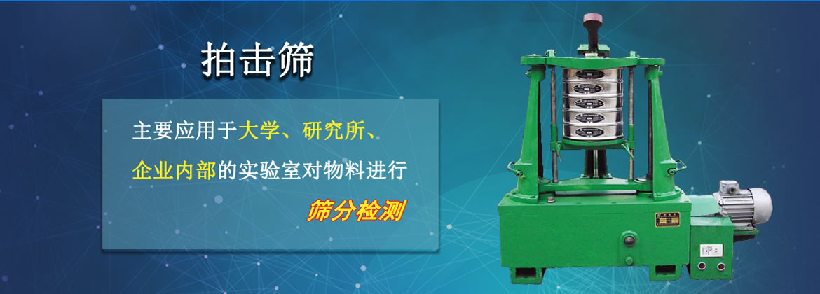 拍击式振动筛电机通过同步带动齿轮变速后使主轴转动,主轴带动偏心轮使滑板带动设备做往复运动,同时带动顶杆转动,顶击拍锤,在往复运动中拍锤拍击筛框,小于筛孔的物料轻松即可通过筛网,大于筛孔的物料将留在筛网上层,通过拍击原理而完成的筛分作业过程。拍击筛分机是实险室中针对粘性、潮湿的物料较佳的实验测量设备。