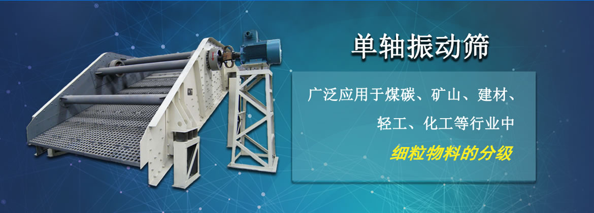 单轴振动筛有一个十分牢靠的筛箱,因为其结构是焊接及铆接而成,在振动器的主轴上不仅中间位置有偏心轴,而且主轴两头也有能够调节的偏心轮。在筛分时,电动机经由三角带作用于振动器,传动轴使偏心轴及偏心轮产生惯性力,这种惯性力会令筛箱作近似的圆形的运动,使物料得到了较佳的筛分效果。