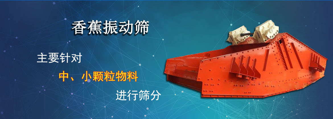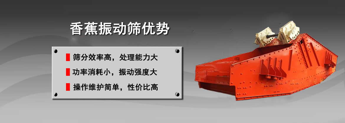 香蕉振动筛在入料端有一斜坡面,先以34°开始,紧接着以一定数目的角度下降到大约为10°的出料端为止。筛面采用不同倾角的折线形式,从入料端到出料端物料层厚度是不变。各段筛面上物料量与流速比值稳定、料层较高,呈现均匀状态筛分效率显著提高,比相同有效面积筛分机的处理量提高1-2倍,对于细粒含量高,特别是物料中料度占分级粒度尺寸小于1/2的物料含量较大时,香蕉型振动筛分机具有极高的筛分效率。